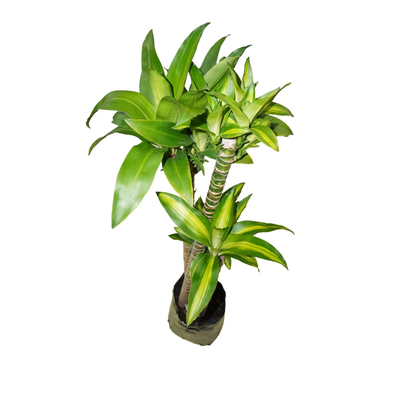 El tronquito de la felicidad o dracaena fragans es una Planta de interior elegante y acogedora: su característico tronco robusto y follaje lanceolado con franja central dorada añaden un toque tropical sin esfuerzo. Muy fácil de cuidar: tolera luz indirecta, requiriendo riego mesurado y un ambiente cálido. Además, purifica el aire y aporta buenas vibras a tu espacio.